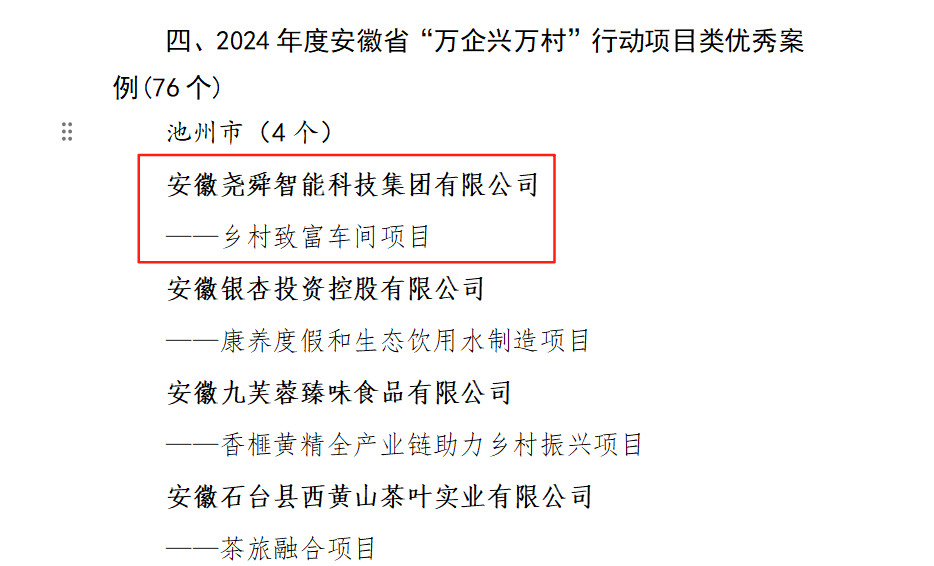 安徽尊龙时凯智能科技集团凭借其创新实践的“乡村致富车间项目”成功入选!!!安徽省“万企兴万村”行动2024年度优秀案例,,,,这是对集团积极响应国家乡村振兴战略,,,探索民营企业助力乡村产业振兴、、就业富民新路径的权威认可。。。